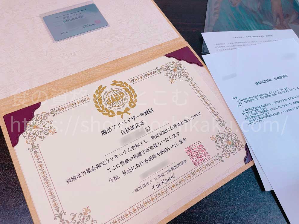 1ヶ月ほどで、キャリカレ資格に対応している日本能力開発推進協会から腸活アドバイザー試験の合否通知が送られてきます。