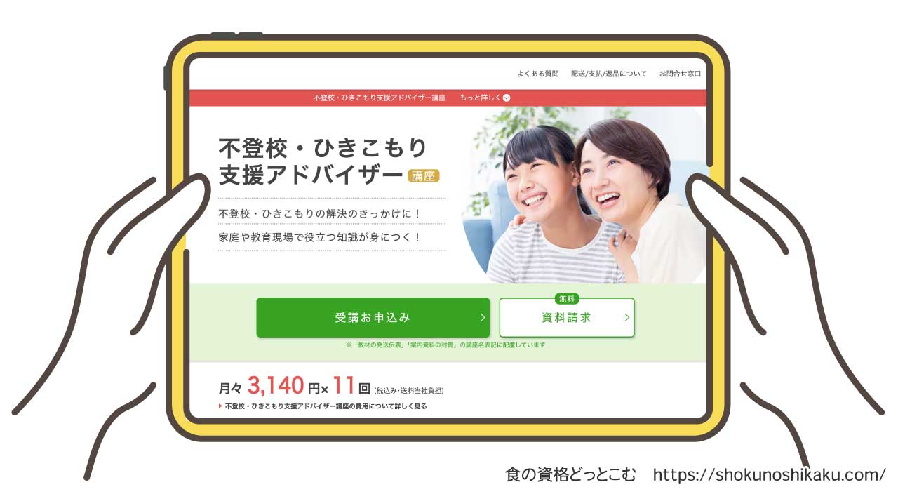- 不登校・ひきこもり支援アドバイザー資格は市販テキストで独学できない。ユーキャンの講座受講が条件